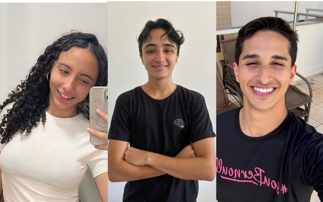 Júlia Vitória Batista, Naief Lasmar Souza e Mateus Hindi Pires conquistaram notas acima de 900 na redação do Enem e médias superiores a 800 pontos na prova geral.