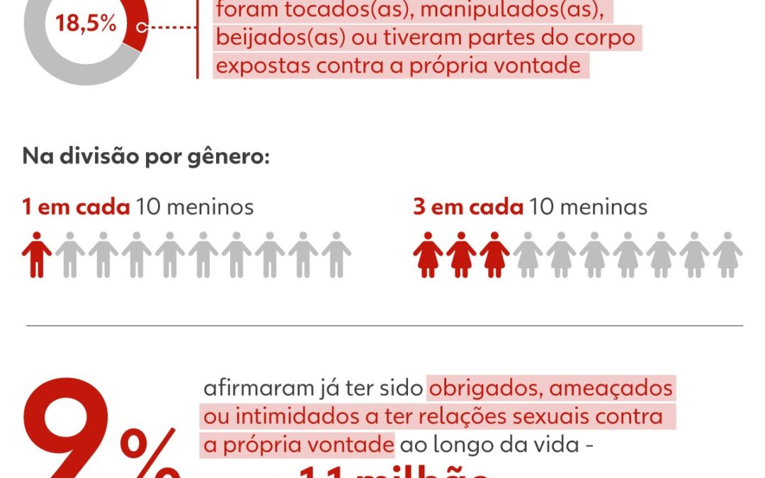 Violência sexual: 26,0% afirmaram ter sofrido assédio sexual — como toques ou exposição contra a vontade — e 11,7% disseram ter sido forçadas a ter relações sexuais.